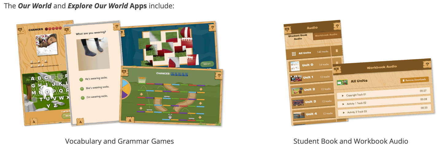 Co-designed by the world-renowned National Geographic, young minds will be able to not only master the English language but also learn about the world around them at the same time. This class hosts an online portion which your child will want to practice again and again at home with the Explore Our World App which all who enroll will have access to (Find out more below). Watch this short video to find out more about what this series has to offer.