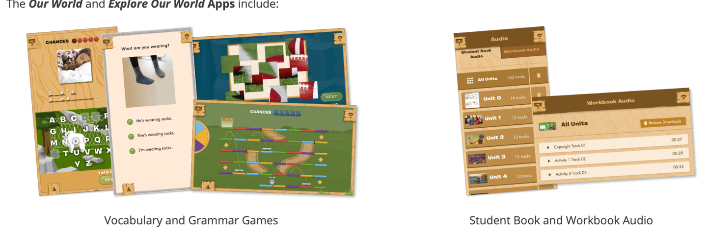 Co-designed by the world-renowned National Geographic, young minds will be able to not only master the English language but also learn about the world around them at the same time. This class hosts an online portion which your child will want to practice again and again at home with the Explore Our World App which all who enroll will have access to (Find out more below). Watch this short video to find out more about what this series has to offer.